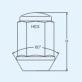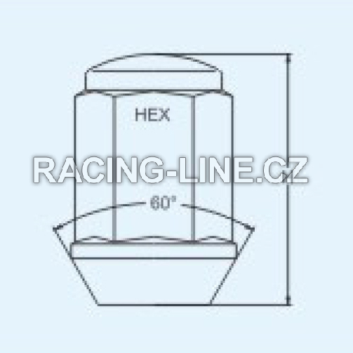 Matice na alu kola a plechové disky M12x1,25 kužel 60° dosedací plocha, uzavřená. Klíč (HEX) 19, výška matice (H) 40 mm, pevnost matice 8.8.